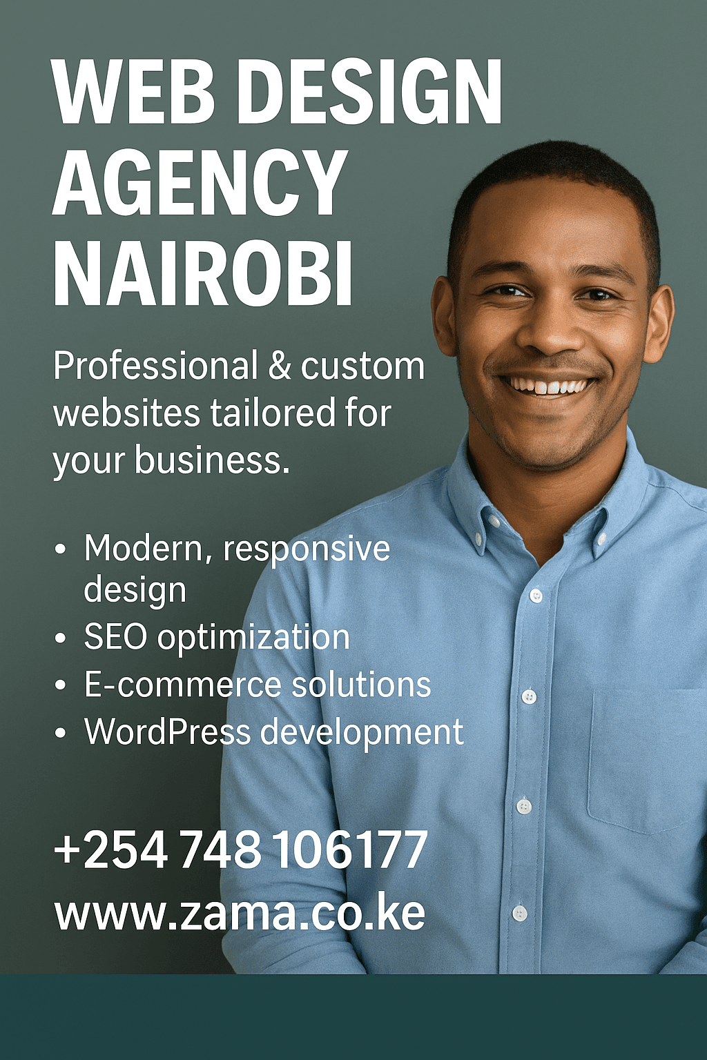 Looking for a trusted and innovative web design agency in Nairobi? At Zama Web Experts, we create modern, responsive, and results-driven websites tailored to meet the needs of businesses, NGOs, startups, and professionals across Kenya. Whether you’re launching a new brand, revamping your current site, or building an e-commerce store, weβre the web design partner you can rely on.